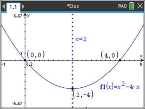 Point to any location on the parabola and the axis of symmetry, with its equation, will appear.
