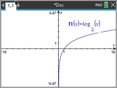 | On the logarithmic graph above, the calculator is "trying" to plot points on the graph to the left. But the graph is SO CLOSE to its vertical asymptote of x = -5, there is no room to put additional pixels before it crosses over the asymptote. Plotting points "straight" down would violate the graph being a function, and f (x) on the TI-Nspire plots functions. The logarithmic graph continues downward toward negative infinity approaching the asymptote x = -5. (Graphing it as a "relation" won't help.) |